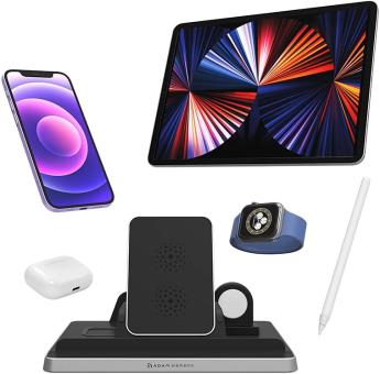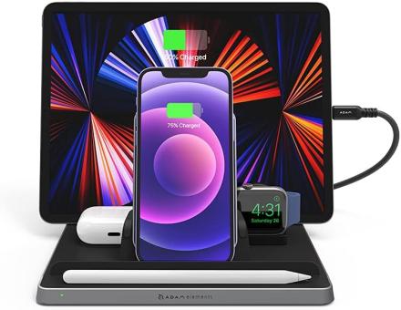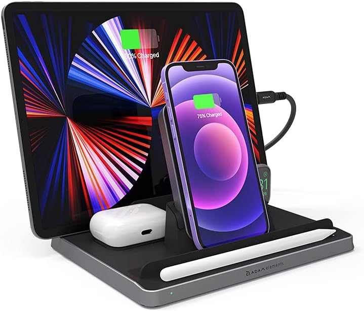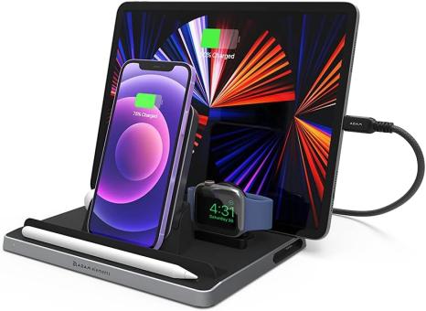 - Die OMNIA Q5 Ladestation bietet für jedes Gerät einen eigenen Platz und sorgt dafür, dass Ihr Schreibtisch aufgeräumt ist und alle Ihre Apple Geräte wie iPhone / iPad / AirPods / Apple Watch / Apple Pencil bereit und aufgeladen sind.