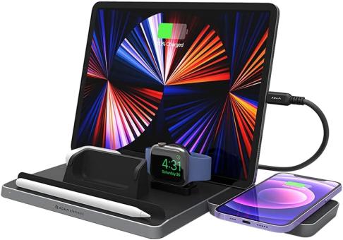 - Separate magnetische Ladefläche für den Apple Pencil und einen Ladebereich für AirPods.