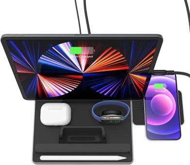 - Unterstützt das gleichzeitige kabellose Laden für iPhone (7,5W) / Android (15W) / AirPods / AirPods Pro / Apple Watch / Apple Pencil Gen2 und anderen Kopfhörer oder Geräten mit kabelgebundener und kabelloser Ladefunktion.