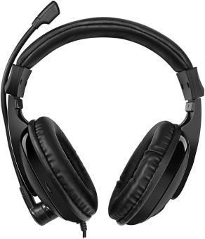 - Das Headset verfügt über eine integrierte Soundkarte, die direktes Plug-and-Play über eine einfache USB-Verbindung ermöglicht und die Notwendigkeit einer separaten Audio- und Mikrofonverbindung überflüssig macht.