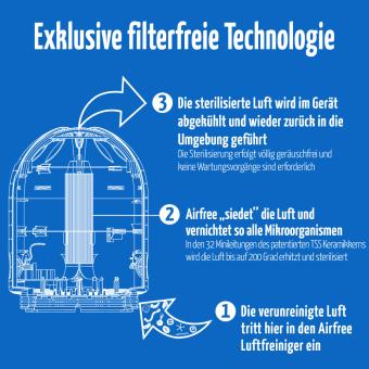 - Die Luftreiniger von Airfree sind wartungsfrei und arbeiten völlig geräuschlos. Sie nutzen die exklusive TSS-Technologie, um auch schädliche Ozonwerte in Innenräumen zu reduzieren.
