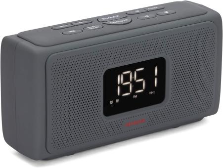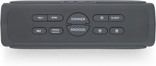 - Große Tasten, einfach zu bedienen. Das Soft-Touch-Design bietet eine glatte Oberfläche des Geräts. Zusätzlich sorgen die breiten Tasten für eine einfache Bedienung des Weckers und des Lautsprechers.