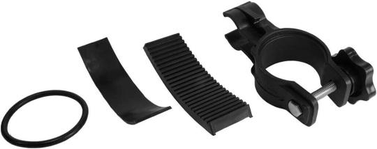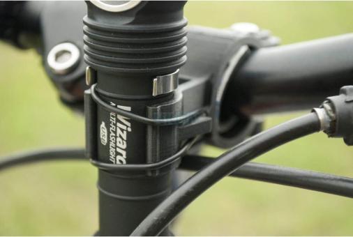 - Die Halterung ist dafür vorgesehen die Winkellampe am Fahrradlenker anzubringen und sorgt dafür, daß die Lampe auch bei unruhiger Fahrt zuverlässig gehalten wird.