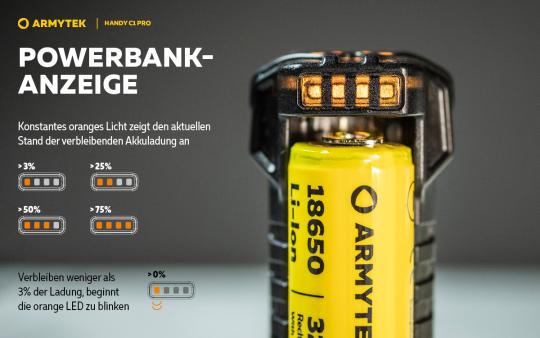 - Mobiles Ladegerät Armytek Handy C1 Pro mit Powerbank-Funktion