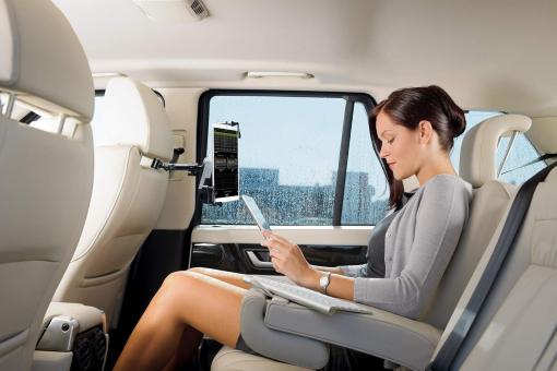 - Diese einzigartige Klemme ermöglicht es, Ihr Tablet direkt hinter dem Fahrer- oder Beifahrersitz oder direkt zwischen ihnen anzuzeigen.