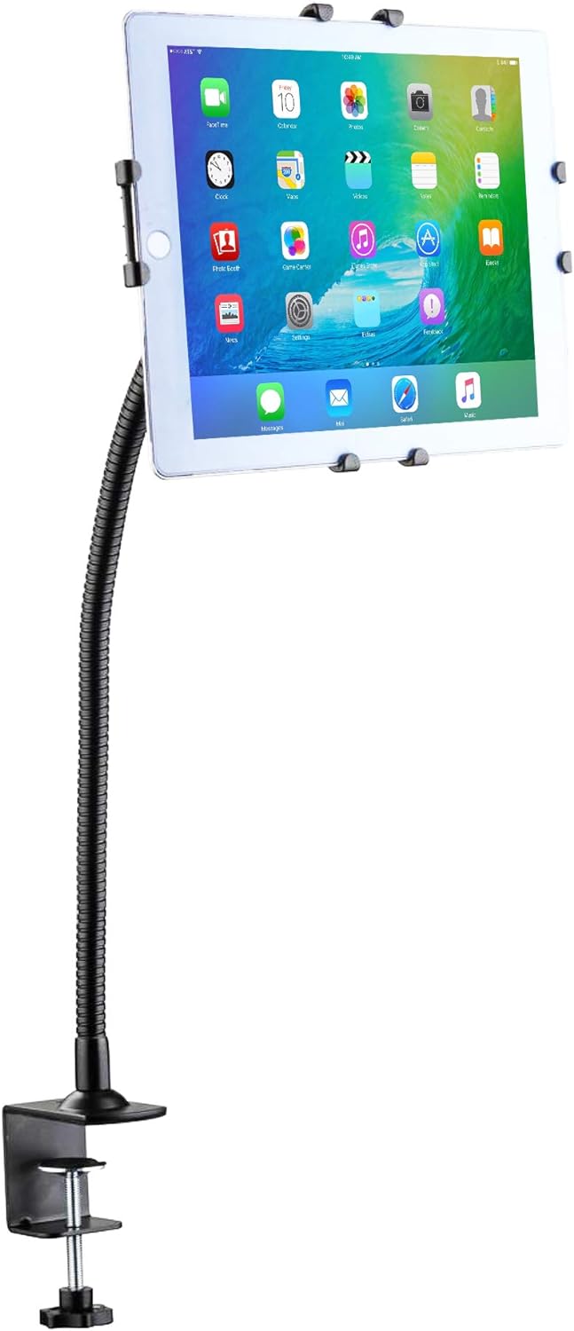 - Mit der Schwanenhals-Klemmhalterung für 9,7- bis 10,1-Zoll-Tablets von CTA Digital können Sie Ihr Tablet problemlos in Ihren Wohn- oder Büroraum integrieren und es an jeden gewünschten Betrachtungswinkel, jede gewünschte Ausrichtung oder Position anpassen.