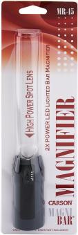- Die MR-15 MagniBar von Carson Optical ist eine absolut verzerrfreie Stablupe aus Acrylglas mit 2-facher Vergrößerung und einer eingebetteten Spotlinse.
