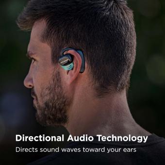- Hören Sie Ihre Umgebung: Die kabellosen Ohrhörer von Aria ruhen auf der Außenseite Ihrer Ohren und verwenden Richtungs-Audiotechnologie, um Schallwellen an Ihre Ohren zu senden. Hören Sie jederzeit Musik, verwalten Sie Anrufe oder verwenden Sie die Sprachsteuerung, während Sie sicher und sich der Welt um Sie herum bewusst sind.