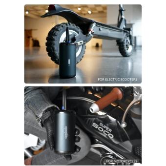- Tragbarer Akku-Luftkompressor zum automatischen Aufpumpen von Pkw-, Fahrrad-, Roller- und Motorradreifen, Sportgeräten u. v. m.