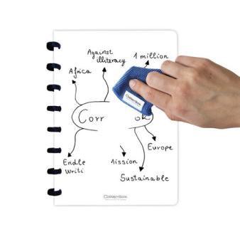 - Das Notizbuch hat 40 wiederverwendbare / löschbare Whiteboard-Seiten. Eine Bindung, bei der alle Seiten ein- und ausgehängt werden können. Enthält einen schwarzen 0,6 mm Correctbook-Marker.