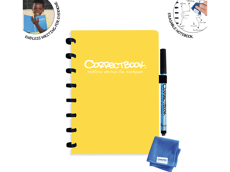 • Notizen können mit der Rückseite eines Correctbook stifts, dem Correctbook Reinigungstuch, den Correctbook Reinigungsschwämmen, dem Correctbook Reinigungsset oder einem trockenen / feuchten Tuch gelöscht werden. Das Correctbook kann jetzt wiederverwendet werden. Schreiben Sie noch einmal in Ihr löschbares Notizbuch!