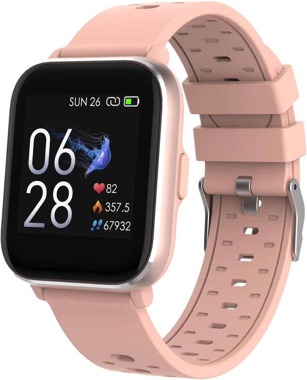 - Bluetooth-Smartwatch mit Körpertemperatur- und Herzsensor 1,4-Zoll-IPS-Bildschirm mit Full-Touchscreen + eine Return-Taste an der Seite für einfache Navigation IP67 Staub- und wasserdicht, Multisport-Modus (Laufen, Gehen, Indoor-Laufen und Radfahren)