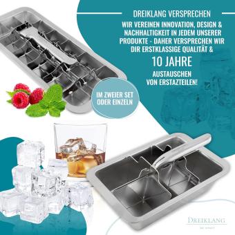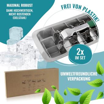 - LANGLEBIG – 2er Set von robusten Eiswürfelform aus polierten hochwertigem, geprüft lebensmittelechtem Edelstahl 18/8