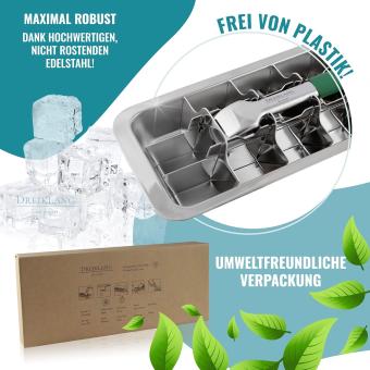- LANGLEBIG & PLASTIKFREI - Die Edelstahl Eiswürfelform ist dank ihres Materials und der passgenauen ökologischen Verpackung absolut langlebig & umweltfreundlich - Auch schneller gefroren als in Silikonformen!