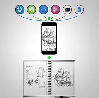 - Bis zu 500 Mal lässt sich jede Seite wiederverwenden. Digitalisiert wird das Geschriebene oder Gezeichnete mit der kostenlosen App »Cam Scanner« als PDF, der Datei lässt sich ein individueller Name und Ablage im Ordner vergeben, so dass die Datei schnell wiedergefunden und bearbeitet werden kann.