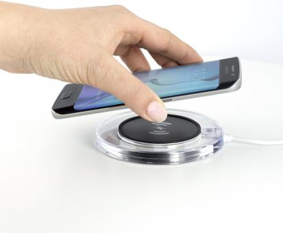 - Legen Sie Ihr Qi-kompatibles Smartphone dazu einfach auf das Ladepad und es wird aufgeladen.