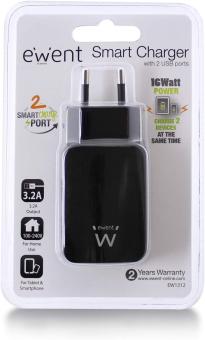 - Mit dem USB-Ladegerät EW1312 mit 2 Ports laden Sie bis zu 2 USB-Geräte gleichzeitig auf. Das intelligente IC-Ladesystem verteilt den verfügbaren Strom clever auf die angeschlossenen Geräte. Darüber hinaus erkennt das intelligente Ladegerät den benötigten Strom des Gerätes selbsttätig. Ihr Tablet und Smartphone werden mit exakt der richtigen Leistung geladen.