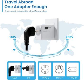 - Mit seinem kompakten Design ist der Stecker klein und leicht genug, um überallhin mitgenommen zu werden, geeignet für Reisen und den täglichen Gebrauch.