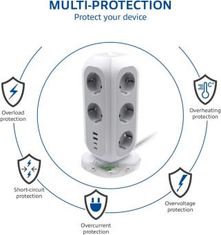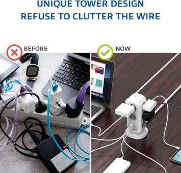 - Platzsparendes, turmförmiges Design, ideal für den Schreibtisch: Alle Steckdosen und USB-Anschlüsse sind gut erreichbar