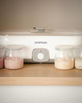 - Mit nur 1 Klick: Sobald die Mischung aus Milch und Milchsäurefermenten in den dafür vorgesehenen Gläsern vorbereitet ist, legen Sie sie einfach in den elektrischen Joghurtbereiter und drücken Sie den Einschaltknopf. Nach 6-9 Stunden können Sie Ihren leckeren Joghurt genießen.