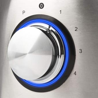 - 4 Betriebsgeschwindigkeiten + Pulse: Wählen Sie die ideale Geschwindigkeit für Ihr Rezept und mit der Pulse-Funktion erhalten Sie in wenigen Augenblicken ein noch gleichmäßigeres und cremigeres Ergebnis.