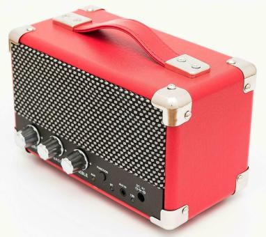 Darüber hinaus ist dieser Lautsprecher mit einem Stoffgitter im Vintage-Stil und Eckenschutz aus Metall wunderschön verarbeitet und dank seines stabilen Griffs können Sie ihn problemlos überall hin mitnehmen.