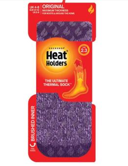 - Dick, weich und mit einem massiven Tog-Wert von 2,34 werden Heat Holders aus einem speziell entwickelten schweren Bauschgarn mit extremen thermischen Eigenschaften hergestellt. Mit langfloriger Polsterung tragen diese Thermosocken dazu bei, die Füße rundum bequem und warm zu halten.