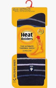 - Heat Holders werden aus einem speziell entwickelten schweren Bauschgarn hergestellt, das über extreme thermische Eigenschaften verfügt. Die Innenseite jeder Socke ist intensiv gebürstet, die sich nicht nur sensationell weich anfühlt, sondern auch warme Luft hautnah einschließt und die Füße länger warm hält.