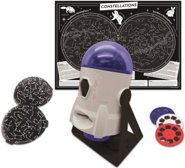 - Inklusive: 1 Projektor + 2 Sternbilder-Kuppeln + 3 DIA-Scheiben + Bedienungsanleitung mit Sternbilder-Karte + 1 Weltraumheft.
