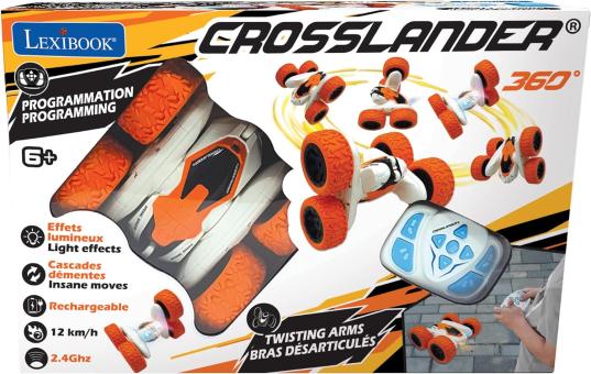 - Mache unglaubliche Stunts mit diesem funkferngesteuerten Crosslander-Auto! Der Crosslander 360 ist ein leuchtendes, wiederaufladbares, funkferngesteuertes Auto mit 4 Rädern, das sich um 360 Grad drehen lässt. Mit den geländegängigen Rädern und der ergonomischen Fernbedienung können Sie das Auto in alle Richtungen lenken und verrückte Stunts machen! Du kannst es auf jedem Gelände fahren, für stundenlangen Spielspaß und mit einer Höchstgeschwindigkeit von 12 km/h. Mit der Programmierfunktion kann das Auto nach Ihren vorprogrammierten Sequenzen mit der Fernbedienung fahren! Lassen Sie sich von ihm zeigen, was er alles kann.