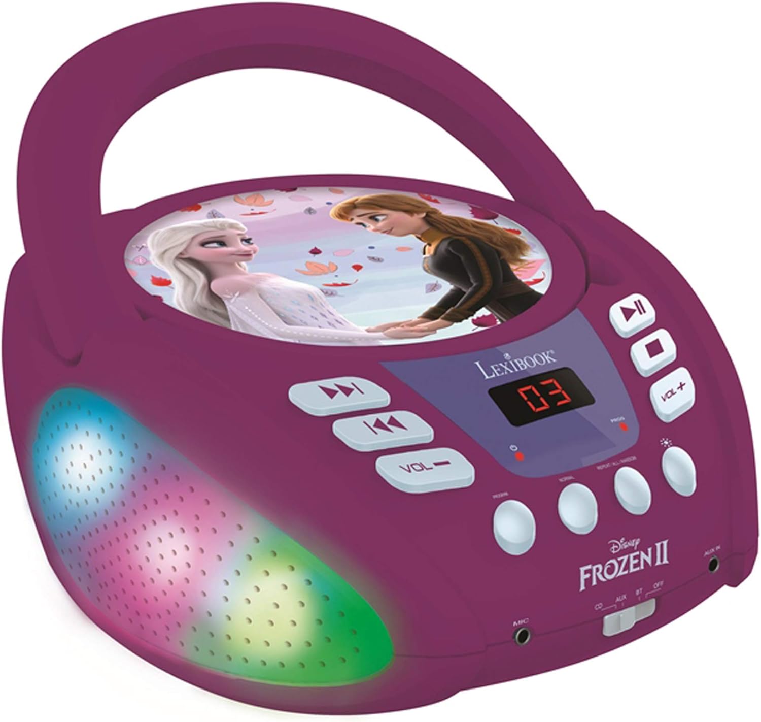 - Transportable CD-Player (CD / CD-R / CD-RW) Frozen mit neuen mehrfarbigen Lichteffekten, perfekt für Kinder!