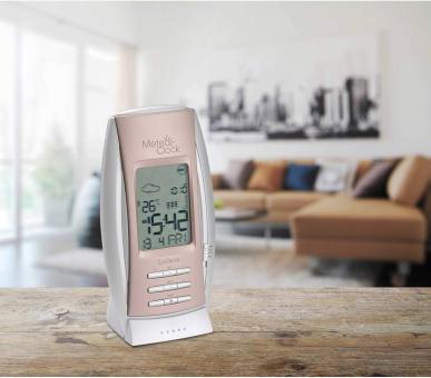 - Die Wetterstation zeigt eine Vielzahl von Informationen an, einschließlich der Innentemperatur und -luftfeuchtigkeit sowie der Außentemperatur und -luftfeuchtigkeit (über eine drahtlose Verbindung mit einem externen Sensor). Es verfügt auch über eine Wettersymbole-Anzeige, die auf Basis der Messungen eine Wettervorhersage bietet.