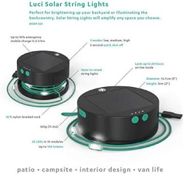 - Versteckt in der erweiterbaren Einheit, packt Luci Solar String Lights 100 Lumen in 10 Knoten an ein 5,5 Meter Kabel.