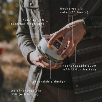 - Aufladen über Solarpanel oder Schnellladung über USB