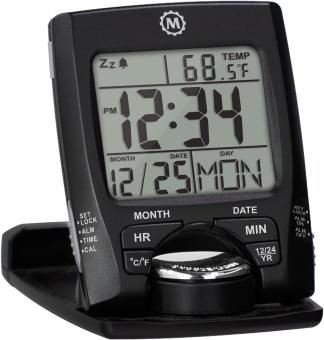 - Der Marathon Reise- und Tischwecker ist eine kompakte Uhr, die sich perfekt für Reisen eignet. Diese Uhr kann um 180 Grad gedreht werden und steht somit stabil auf flachen Oberflächen.