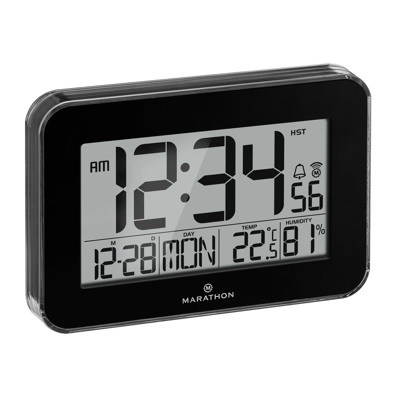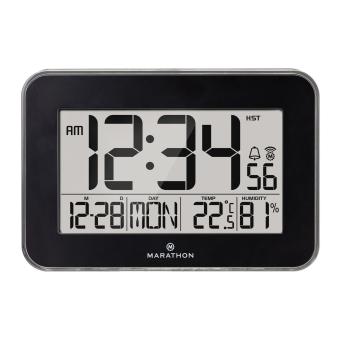 - Zeigt den Monat, den Wochentag und das Datum sowie die Luftfeuchtigkeit und die Raumtemperatur in Celsius oder Fahrenheit an.