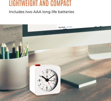- Der analoge Mini-Wecker mit automatischem Nachtlicht von Marathon ist die perfekte Kombination aus Form und Funktion.