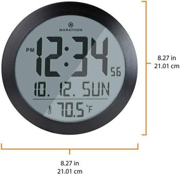 - Runde digitale Wanduhr von Marathon mit Kalender und Innentemperatur-Anzeige