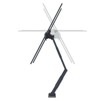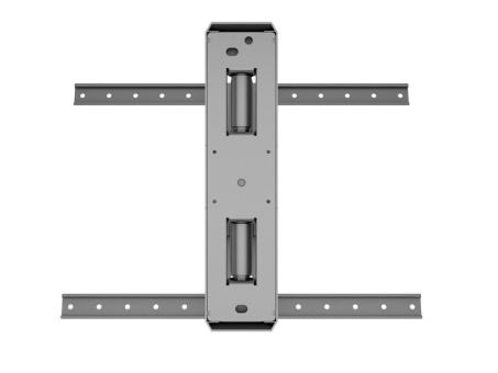 - Die leichte Halterung zieht sich glatt und lässt sich leicht auf nur 39 mm von der Wand entfernt. Um Strom und Kabel beim Ziehen oder Anschieben des Displays zu schützen, werden Kabelverwaltungskanäle in die Arme eingebaut.