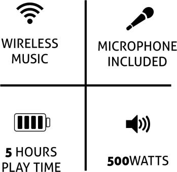 - Dank seiner langen Akkulaufzeit müssen Sie sich keine Sorgen um Unterbrechungen während Ihrer Party machen.