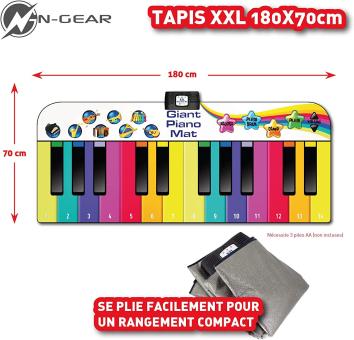 - Die N-Gear Riesen Klaviermatte ist extra groß mit grossen Tasten, so dass Kinder richtig gut zusammen spielen können. Und Super einfach: sobald die Batterien eingelegt sind, muss das nur noch ausgerollt und eingeschaltet werden, drinnen oder draußen!