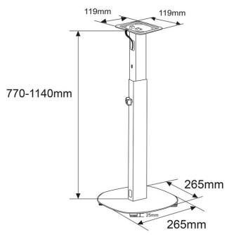 - Höhe einstellbar – positioniert den Lautsprecher über die 5 verschiedenen Optionen auf die ideale Hörhöhe (normale Füße/Spikes: 770/780, 840/850, 940/950, 1040/1050 oder 1140/1150 mm)