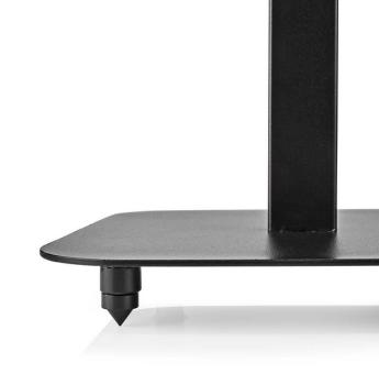 - Ein robuster und stabiler Sockel mit Stahlpolstern für Holz- und Fliesenböden und Stahlspikes für Teppichböden isoliert den Ständer akustisch vom Untergrund und sorgt für Stabilität.