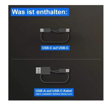 - Vorhandene Anschlüsse: USB-A (2x), USB-C (1x)