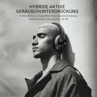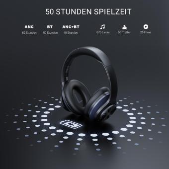 Genießen Sie bis zu 62 Stunden Musik, Filmwiedergabe oder Gesprächszeit im ANC-Modus und 50 Stunden im Bluetooth-Modus (bei 50% Lautstärke).