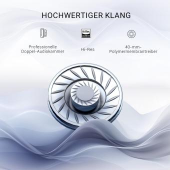 - Die Over-Ear-Kopfhörer sind mit dualen 40mm großen Audio-Treibern ausgestattet, die einen Frequenzbereich von bis zu 40 kHz abdecken.