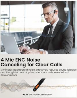 - DasS30 Bluetooth-Headset verfügt über 4 Mikrofone und einen AI-Rauschunterdrückungsalgorithmus. Dies ermöglicht eine 99,9% VoicePure ENC-Geräuschunterdrückung und somit eine klare und optimal verständliche Anrufqualität für Online-Meetings und Geschäftsgespräche. Ideal auchfür präzise und klare Gespräche unter lauten Umgebungsbedingungen.