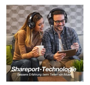 • Möglichkeit, 2 Paar Kopfhörer miteinander zu verbinden, um Musik mit anderen zu teilen