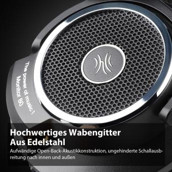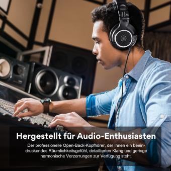 • Elaborate Open-Back Akustikdesign: Ermöglicht unbehinderte Klangausbreitung innen und außen für natürlichen und realistischen Klang.