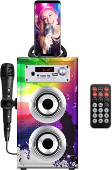 - Lieferumfang: Karaoke-Lautsprecher, Mikrofon mit Kabel, Micro-USB-Kabel, AUX-Kabel und Benutzerhandbuch
